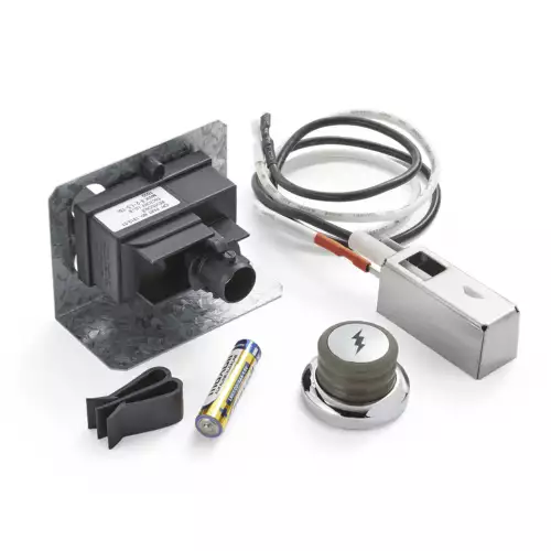 Kit includes ignition module/bracket assembly, ignition chamber/bracket assembly, electrode/wire, ground wire, clip, battery, and instruction sheet.