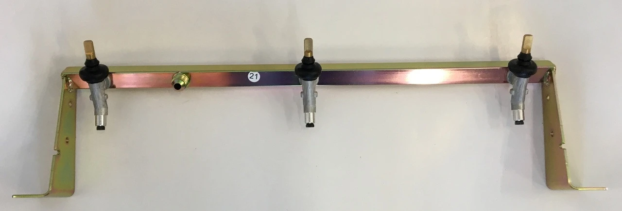 This OEM Weber manifold comes complete with the valves and two screws (NG hose and regulator sold separately)Â
