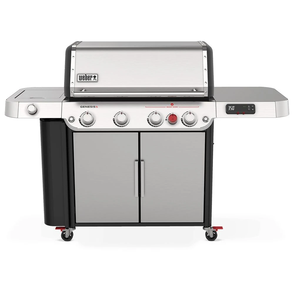 Weber Genesis Smart 4-Burner Freestanding Gas Grill with Sear Burner and Side Burner (WEB-SPX-435) offers an upgraded grilling experience with modern convenience and tech features that are designed to make it a breeze to get great results every time. This gas grill features high performance PureBlu burners and Weber’s largest and hottest sear zone, allowing you to get those deep, rich grill marks that everyone craves. It also boasts a smart side burner, giving you more space to work your magic, and an improved grease management system that makes clean-up a snap. On top of all of that, it also gets all the fundamentals right as well. It features a surprisingly sizeable grilling area augmented with an expandable upper grate for even more flexibility, whether you’re toasting buns or just keeping things warm until dinner time. Finally, it also includes a side mounted locker with room for all your grilling accessories and integrated LED lighting for safety and convenience. All in all, the Weber Genesis gas grill is a premium combination of quality craftsmanship and innovative features.