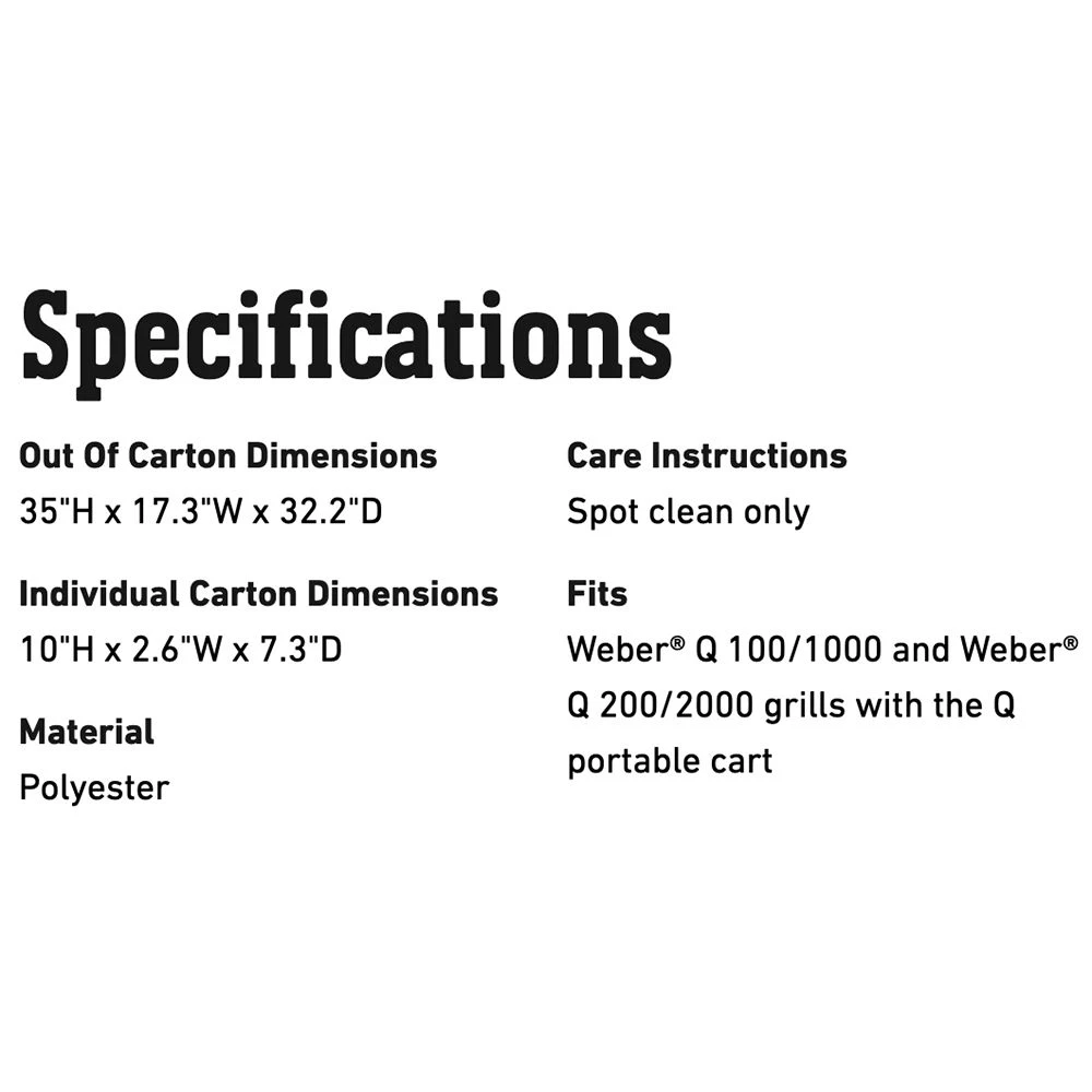 - For use with Weber Q 1000/2000 Series grills with portable cart