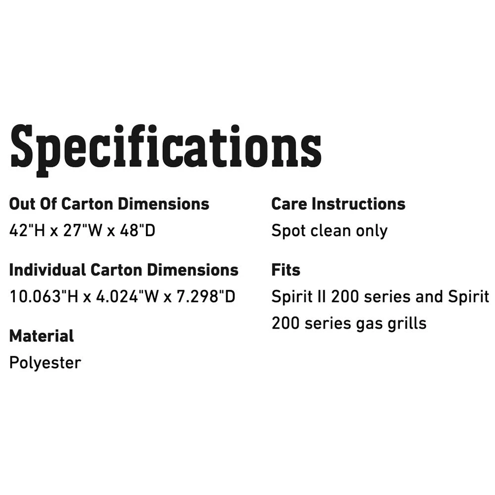 Weber Premium Grill Cover for Spirit and Spirit II 200 Series Grills (WEB-7138) offers an excellent way to protect your Weber grill from the elements. Weather-resistant fabric helps shield your grill from rain and snow, while the smart fastening straps ensure the grill cover stays in place for lasting protection.
